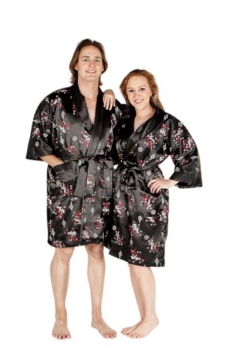 This is a completely reversible unisex's Chinese dragon warrior robe or kimono. Great for both men and women! Decorated beautifully with a Chinese design on the outside, reverse it and you've got a solid black robe with a magnificent Chinese dragon embroidered on the back. Very good quality and celebrates the bold and refined style of Chinese culture wonderfully! A robe like this would easily retail for $89+ here in the US or Europe. The fabric is a satin and polyester mix, making it very soft and comfortable, without sacrificing the strength of the fabric and it's overall durability. This robe would be great as a bath robe, smoking jacket, lounging robe or for outside use for boxing, kung fu and karate students. Besides general martial arts and boxing, this robe is great for tai chi students as well.