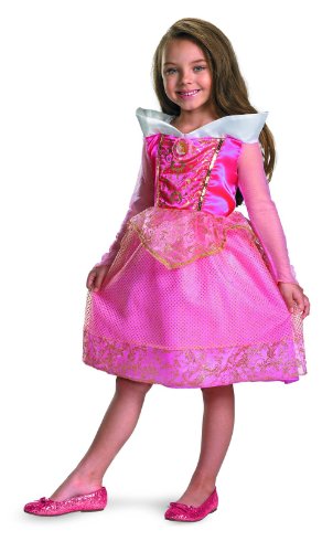 This child Aurora Sleeping Beauty Costume includes the princess style dress with sparkle print overlay.